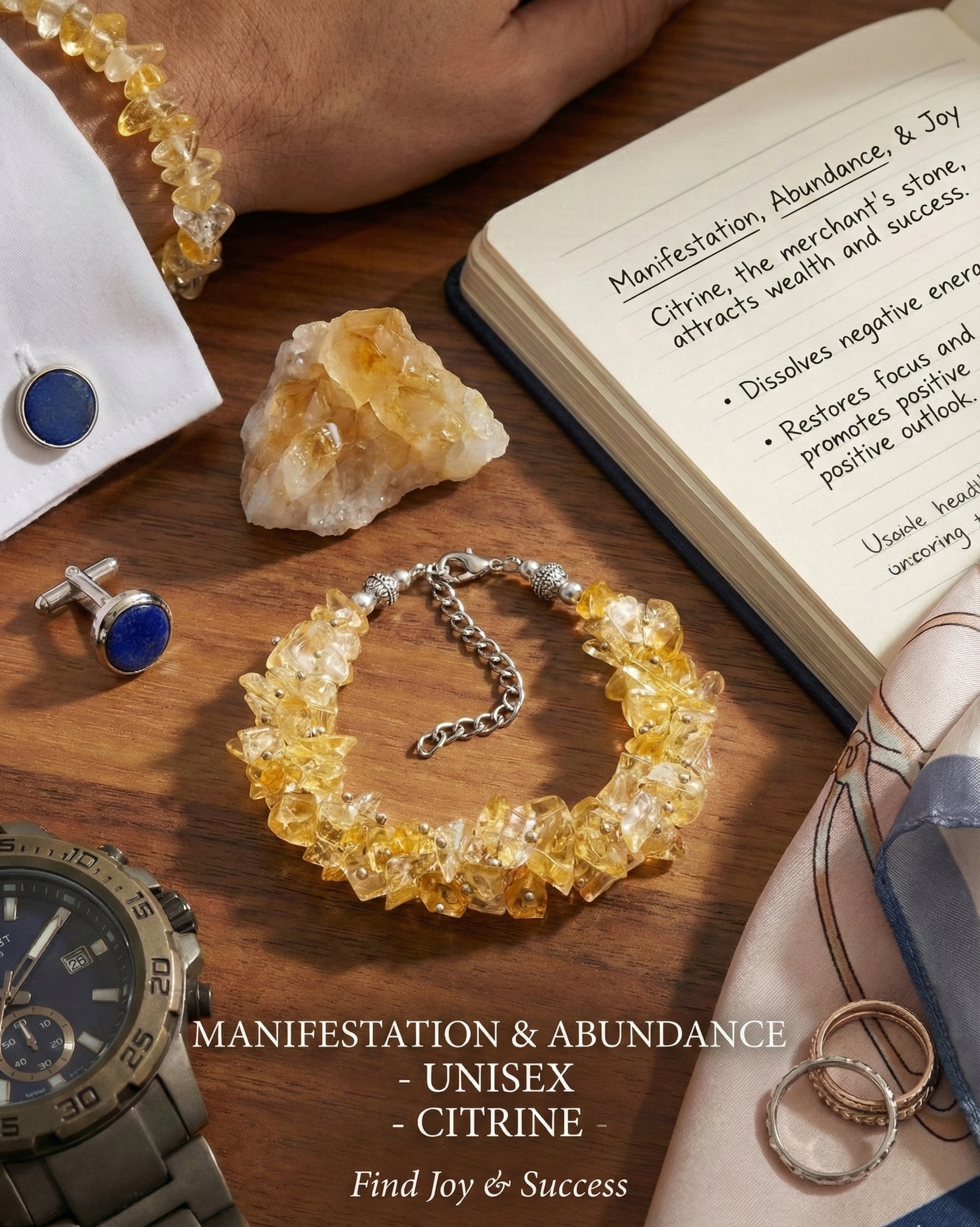 Elevate your energy with the powerful Citrine Crystal Bracelet, beautifully handcrafted to bring wealth, positivity, and confidence into your life. Known as the “Merchant’s Stone”, Citrine is believed to attract financial success and new opportunities while removing negative energy and fear.